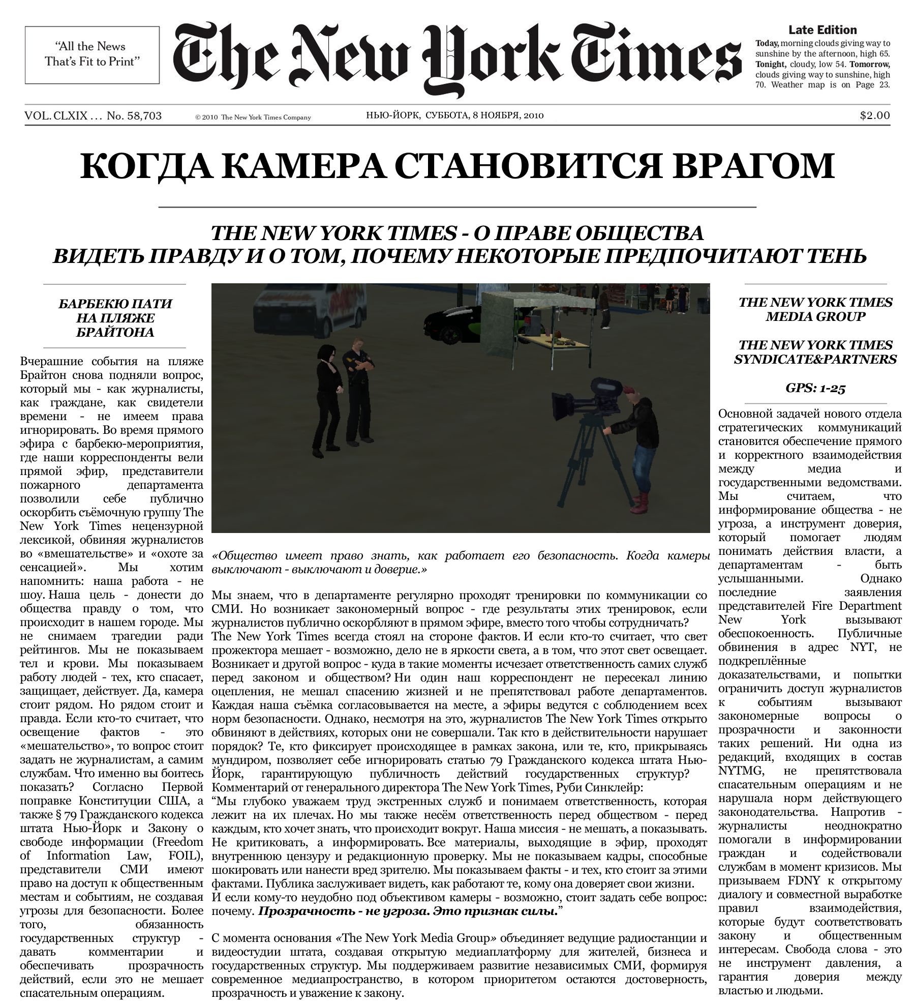 к работе служб все больше и больше вопросов. на той неделе мне сообщили, что у них проводятся РЕГУЛЯРНЫЕ учения по работе с гражданскими и отдельно с журналистами.