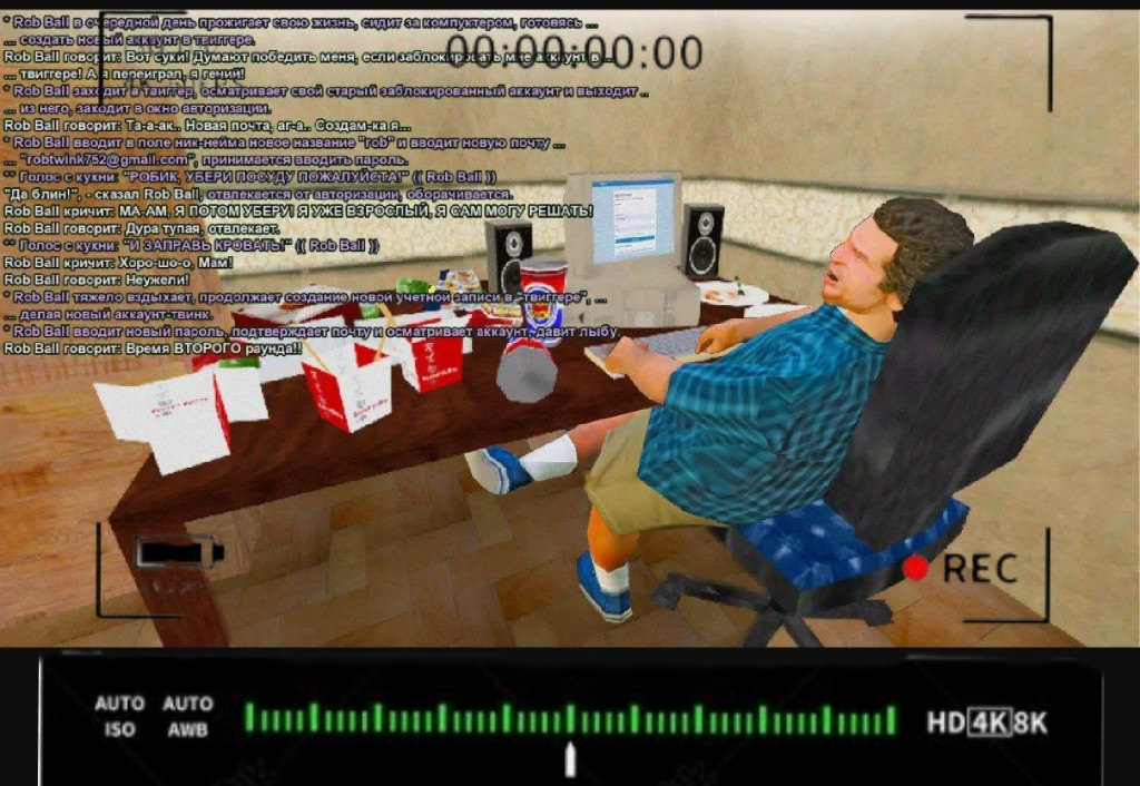 Я ведь знаю что ты на самом деле Роб Барр и ты ходишь в синей клетчатой рубашке, я следил за тобой как ты сидишь за компьютером в тонне мусора и обьедков из Бургер Кинга и КФС, ещё одна жертва Мак Донольдса